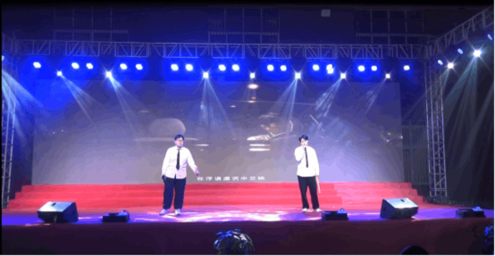 高三楊賢、章梓謙帶來的歌曲《晚安》在這個(gè)美好的夜晚,讓清風(fēng)與明月為我們送來衷心的祝福。
