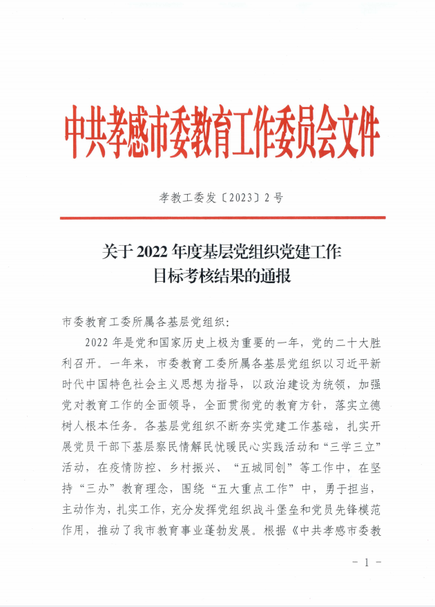 2023年1月16日關(guān)于2022年度基礎(chǔ)黨組織黨建工作目標(biāo)考核結(jié)果的通報(bào)