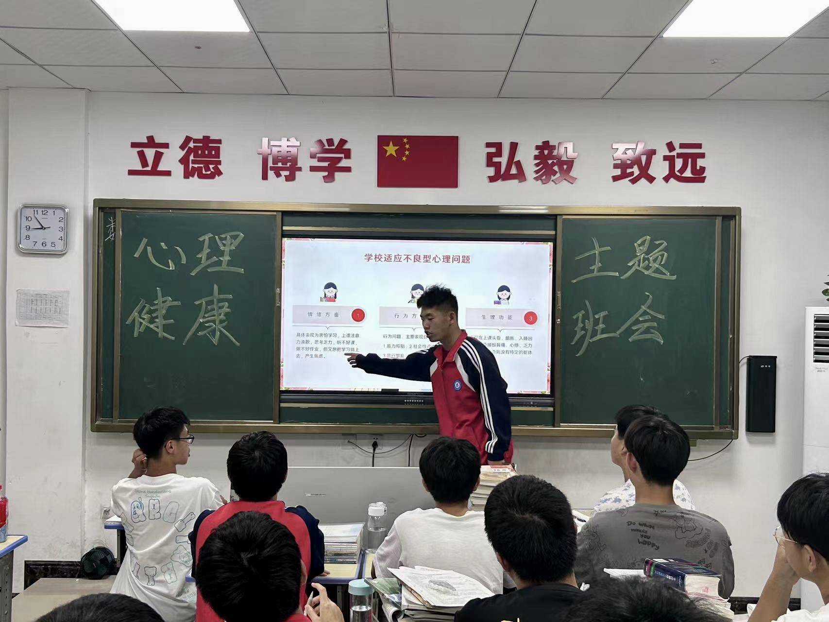 班會上,教師引導學生明確心理健康標準,了解常見的心理問題,鼓勵學生說出自己在學習和生活中存在的困惑,教給學生解決困惑的方式方法,教育學生以健康積極的心態(tài)面對困難與挑戰(zhàn)。