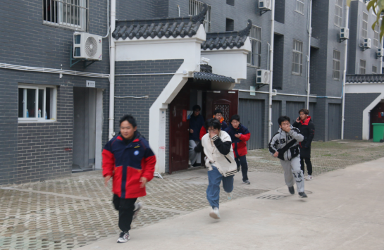 實(shí)戰(zhàn)演練模擬了教學(xué)樓和學(xué)生宿舍發(fā)生火災(zāi),隨著一陣長笛的警報(bào)聲在校園內(nèi)響起,各班班主任迅速到達(dá)樓下,組織學(xué)生安全有序從樓棟中撤離到學(xué)校操場的安全地帶,整個撤離過程共用時(shí)30秒。